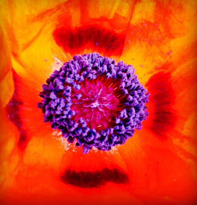 Vibrant macro photograph of a purple-centered flower captured by Layne Morgan.