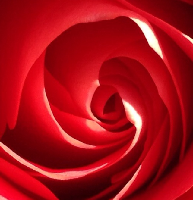 Macro photograph of a red rose forming a natural spiral by Layne Morgan.